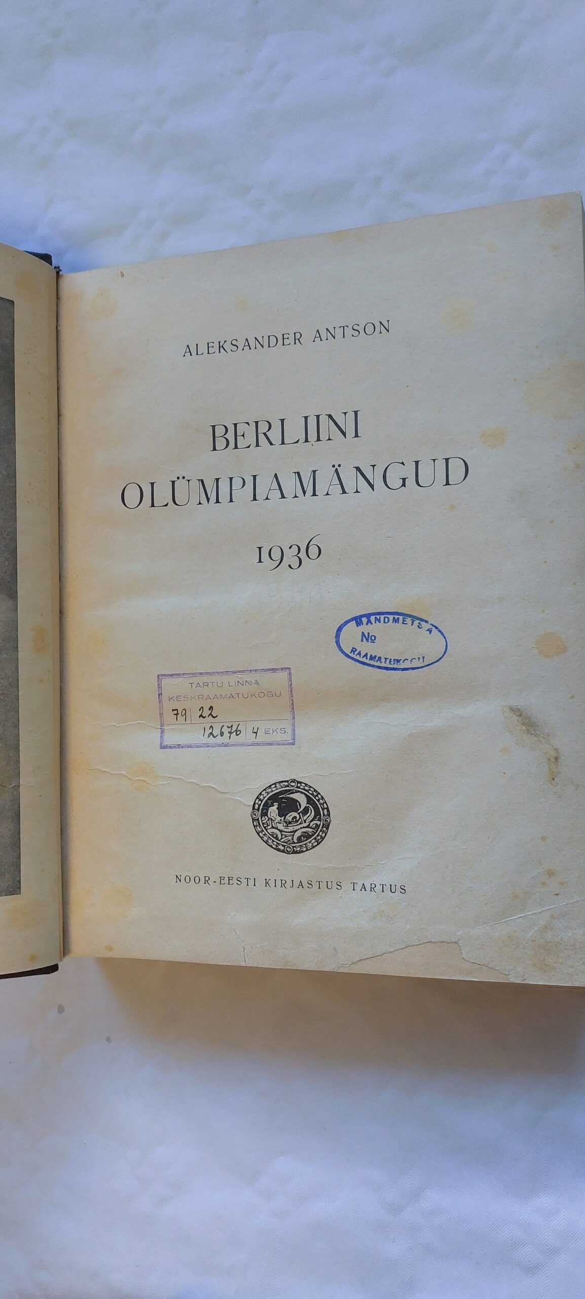 Berliini olümpiamängud 1936. Aleksander Antson.