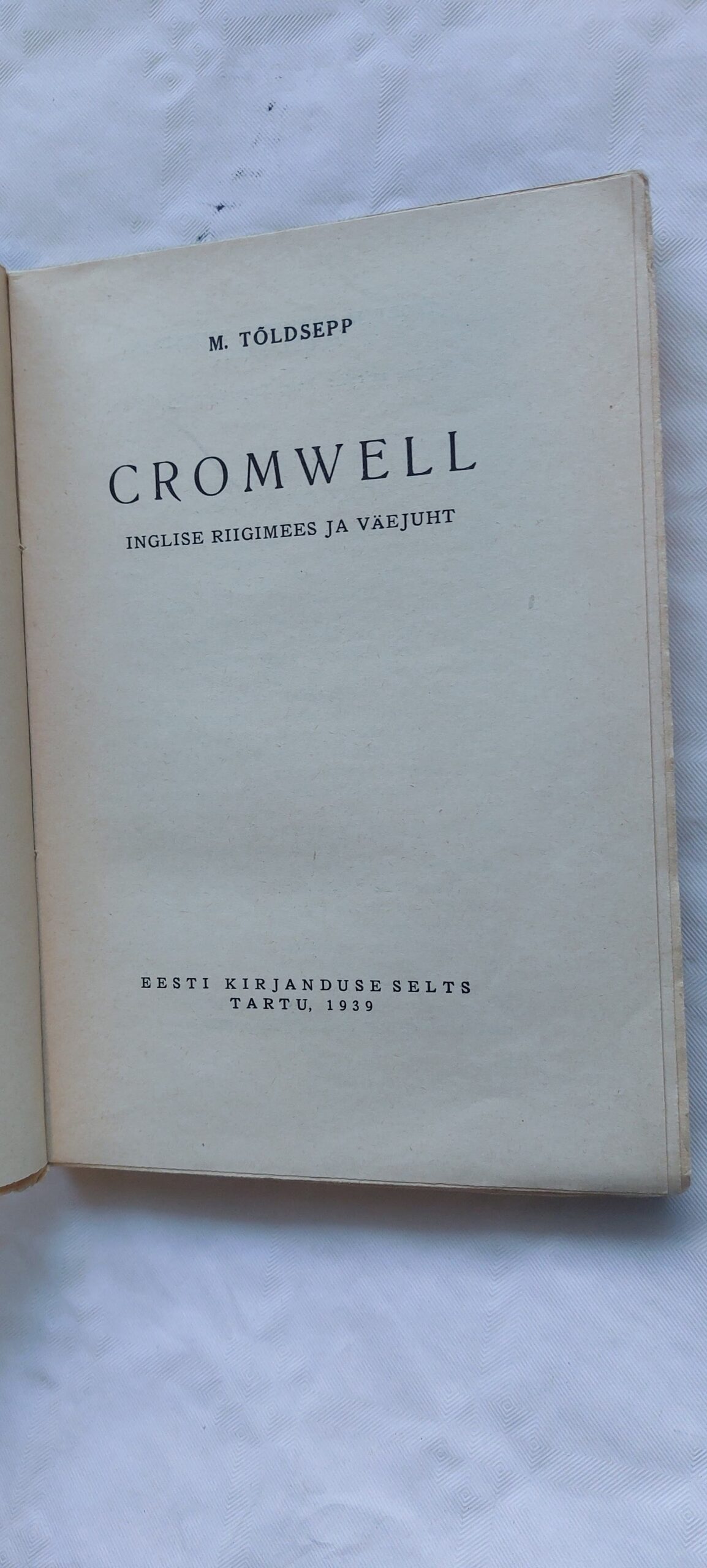 Cromwell. Inglise riigimees ja väejuht. M. Tõldsepp. 1939