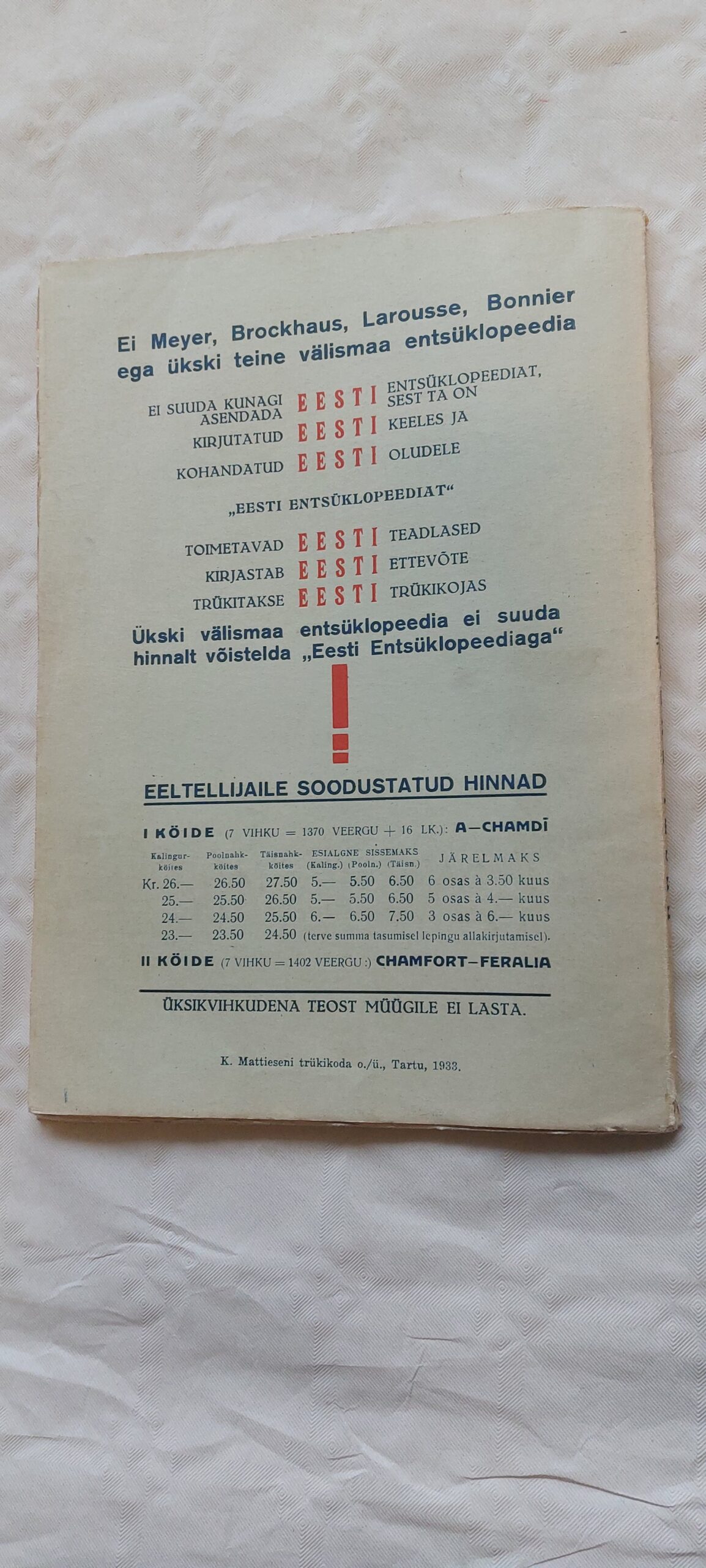 Eesti Entsüklopeedia. 15. vihik. 1933