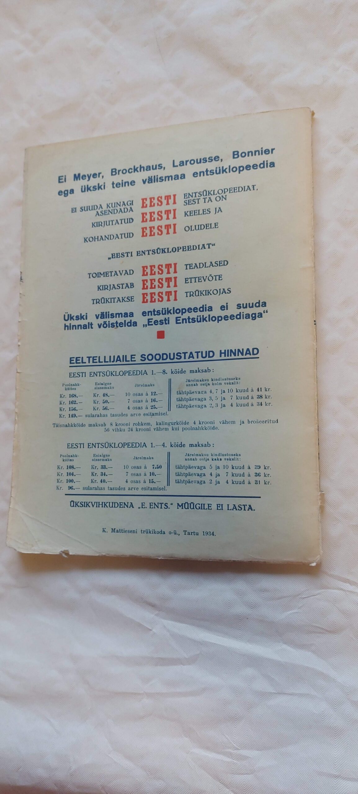 Kategooriad: Entsüklopeediad, sõnastikud, keeleõpikud (kuni 1944), Teatmeteosed