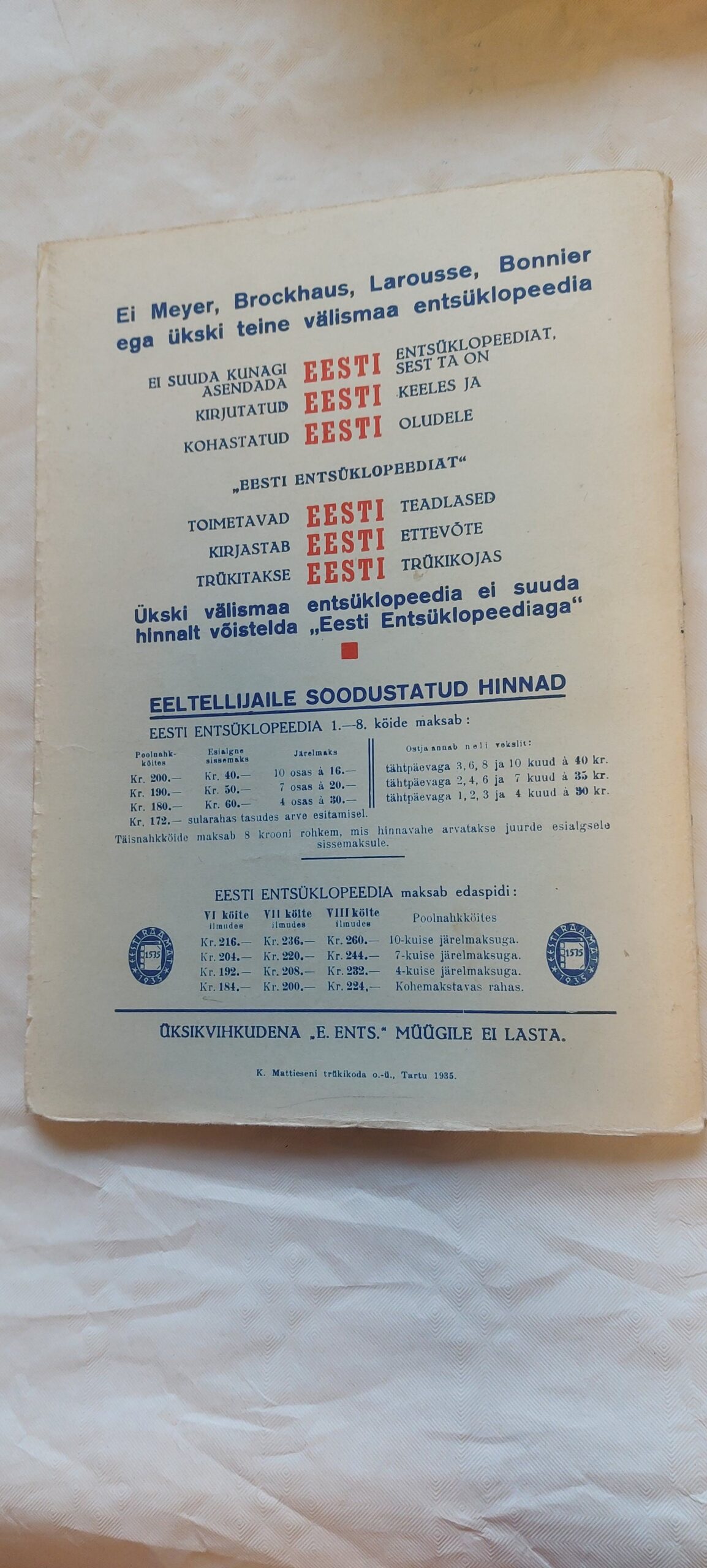 Eesti Entsüklopeedia. 41. vihik. 1935