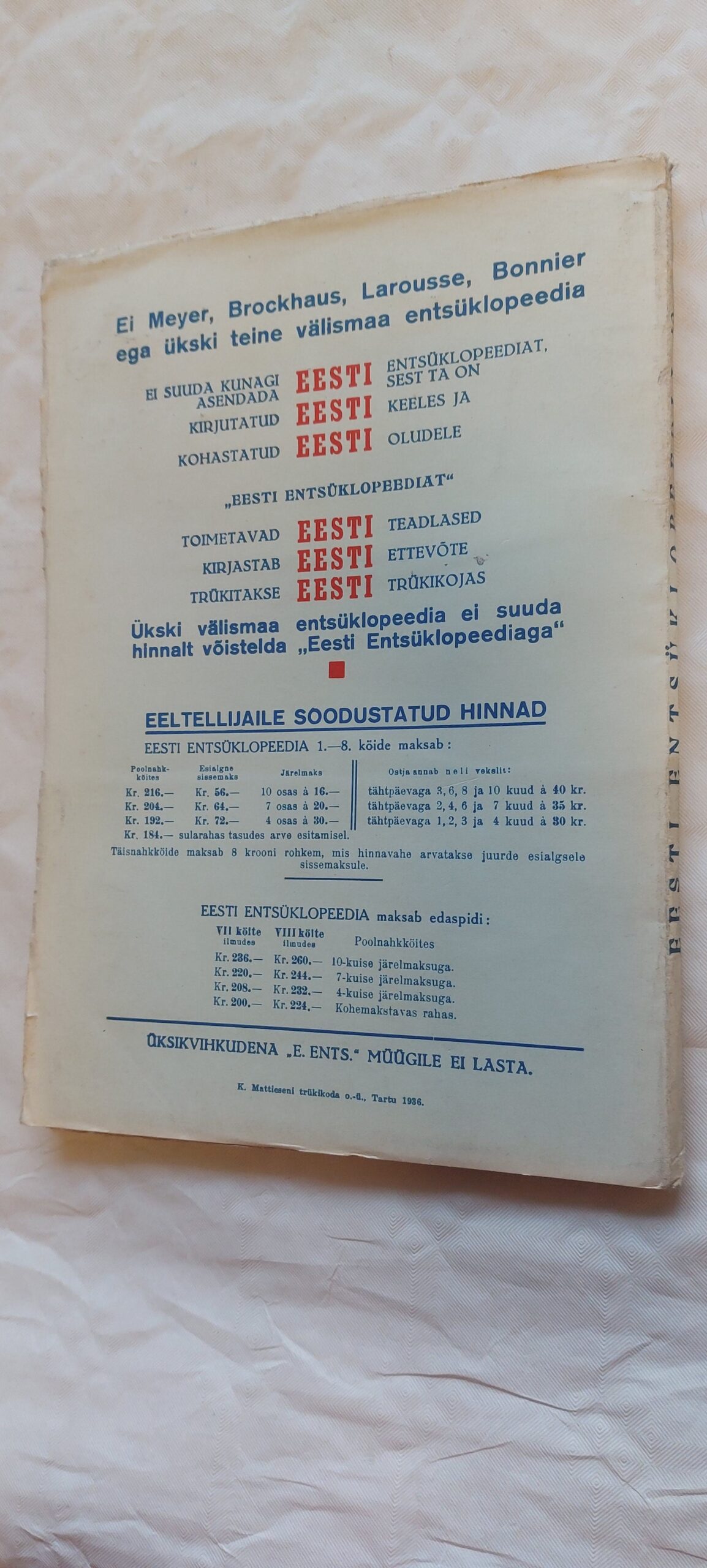 Eesti Entsüklopeedia. 49. vihik. 1936