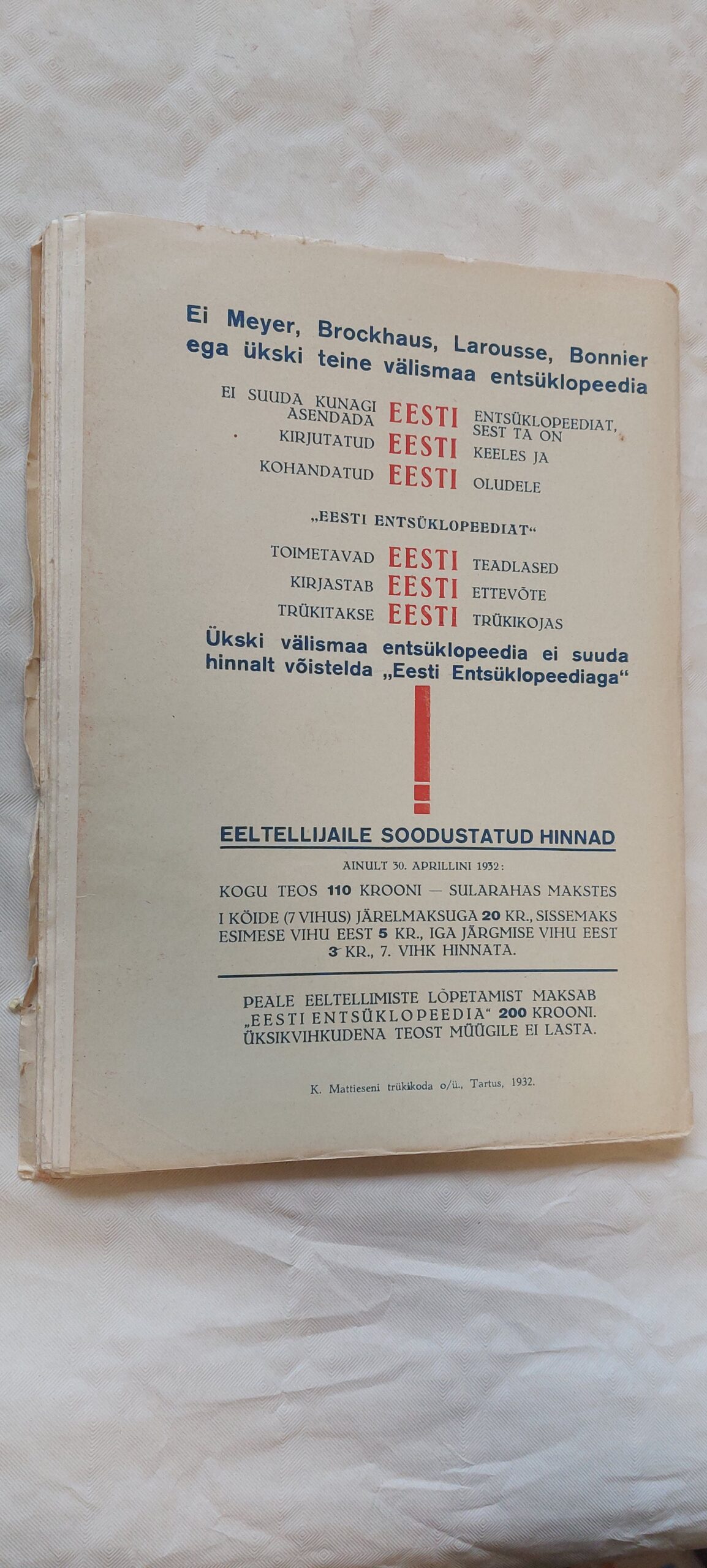 Eesti Entsüklopeedia I. osa. A-Chamdi. 1932