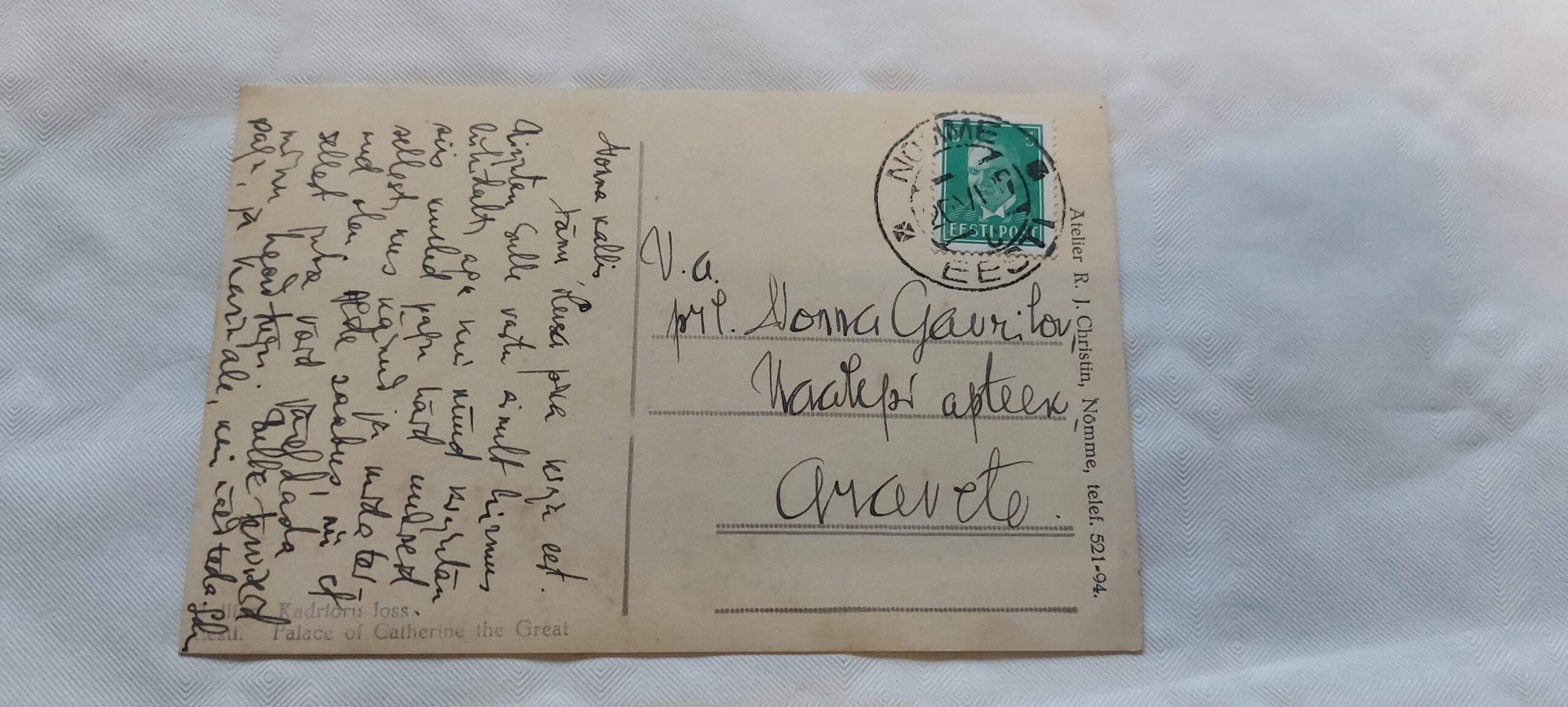 EV AEGNE POSTKAART. KADRIORU LOSS.