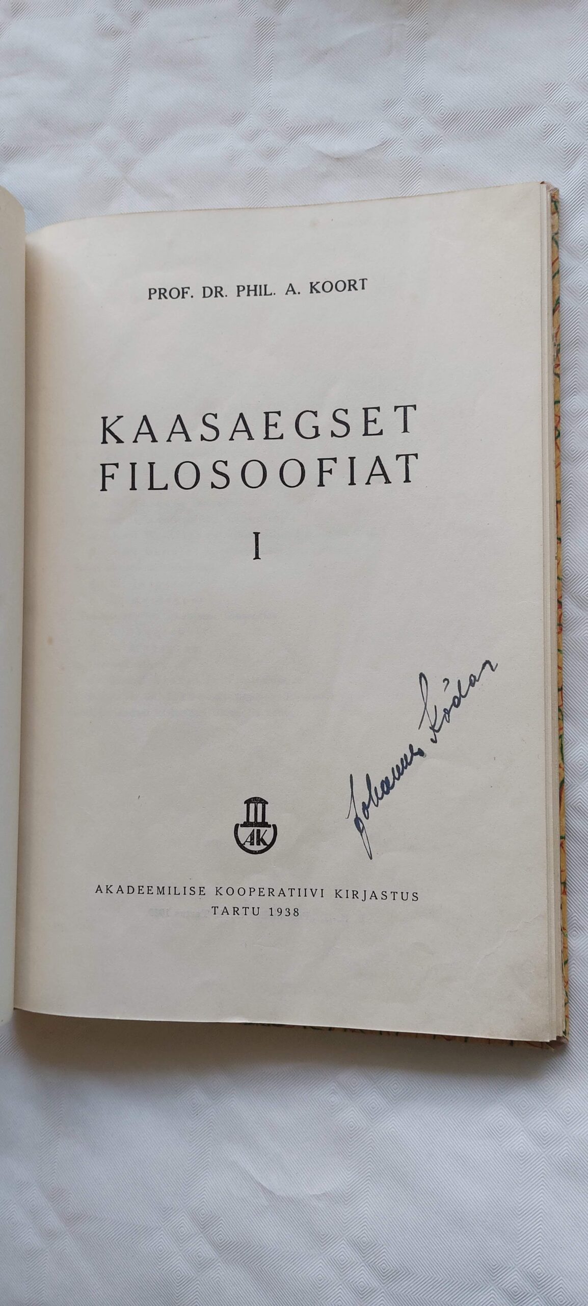 Kaasaegset filosoofiat I. Dr. Phil. A. Koort. 1938