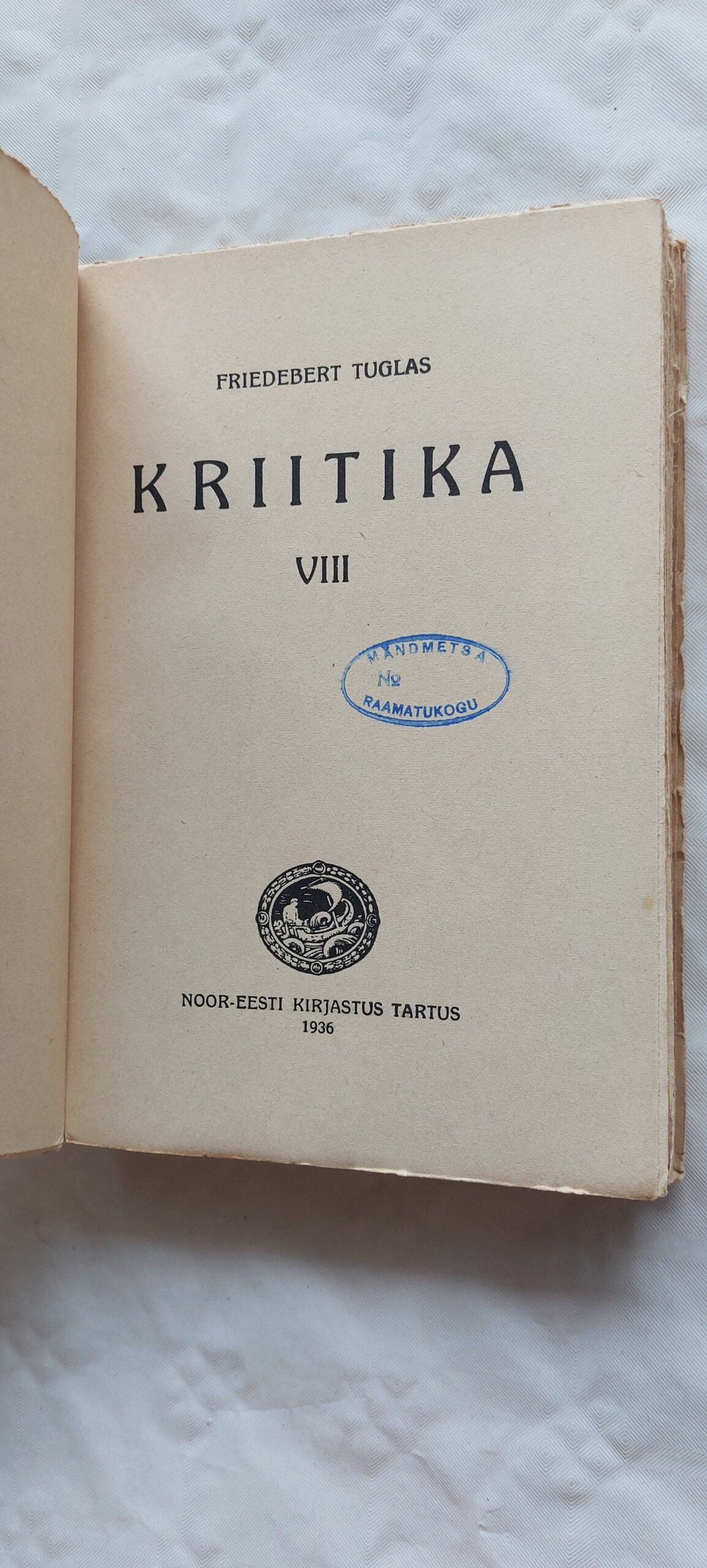Kriitika VIII. Friedebert Tuglas. 1936