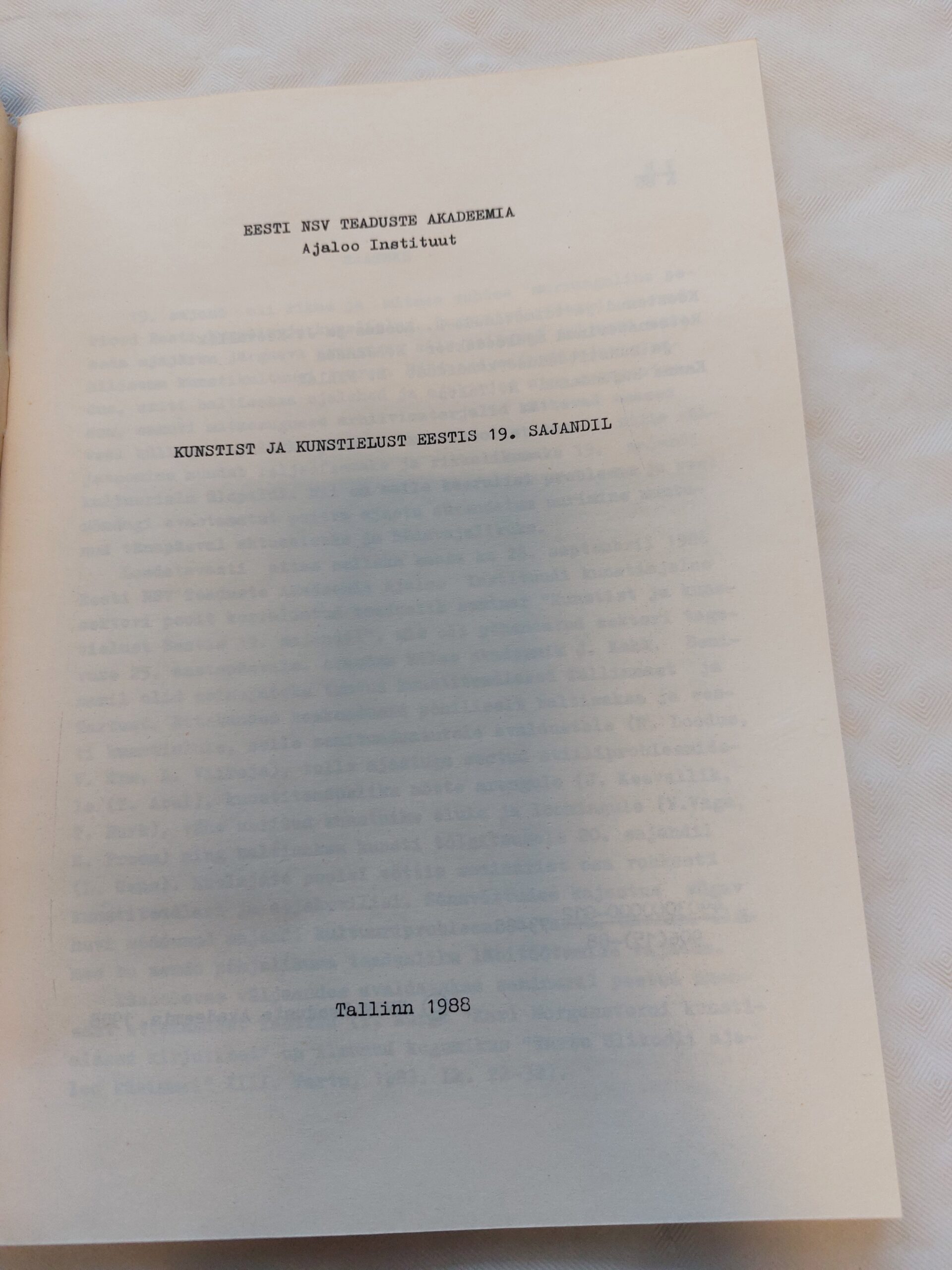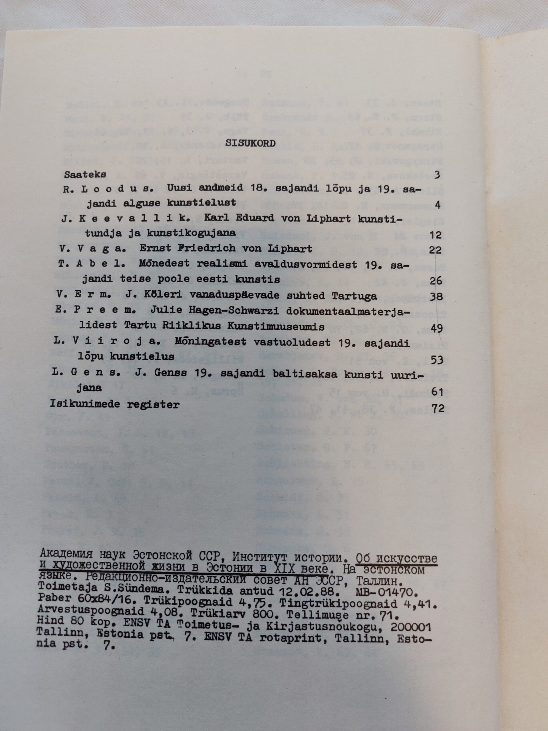 Kunstist ja kunstielust Eestis 19.sajandil. Juta Keevallik, Rein Loodus. 1988