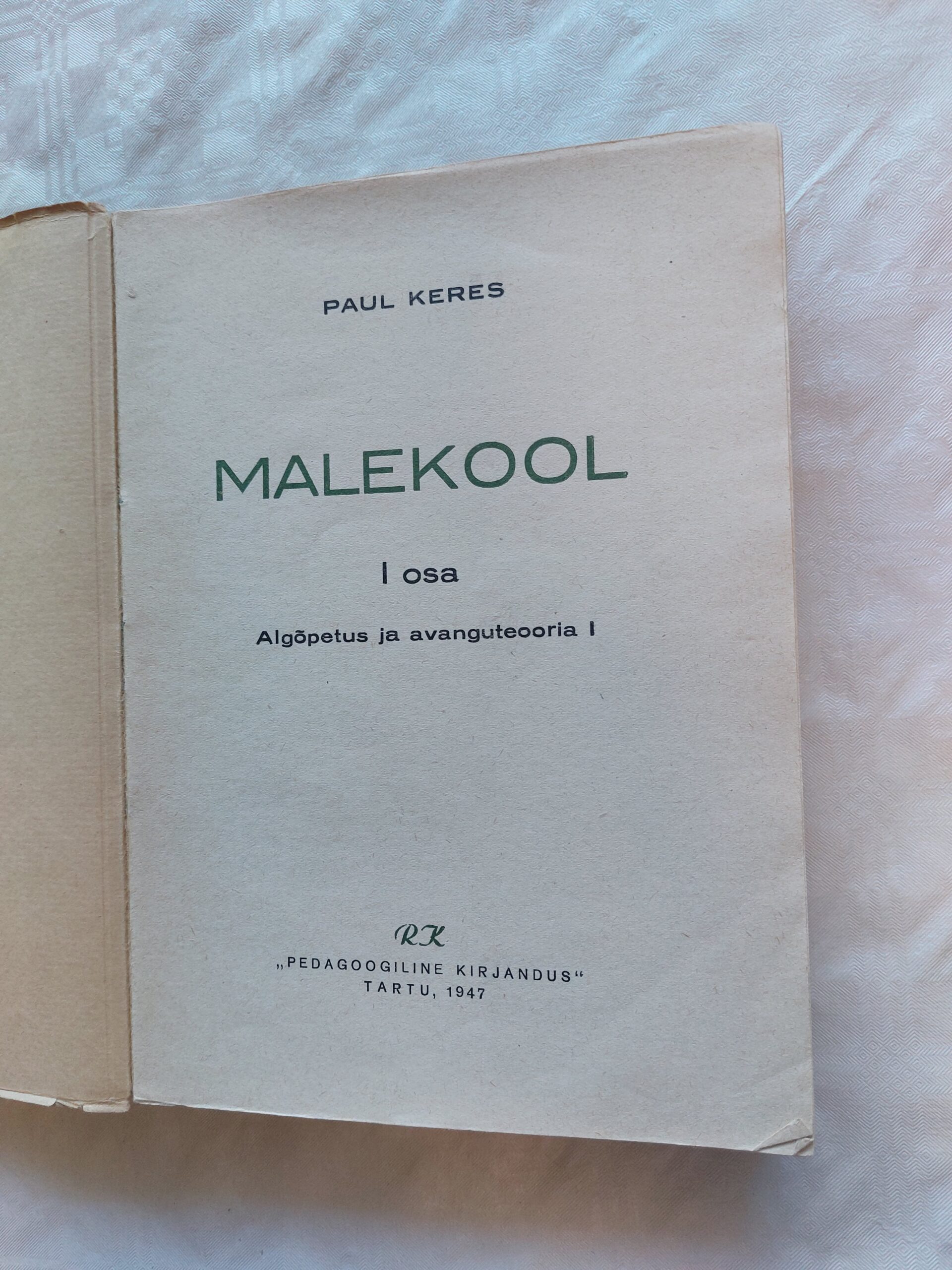 Malekool. I osa. Algõpetus ja avanguteooria I. Paul Keres. 1047