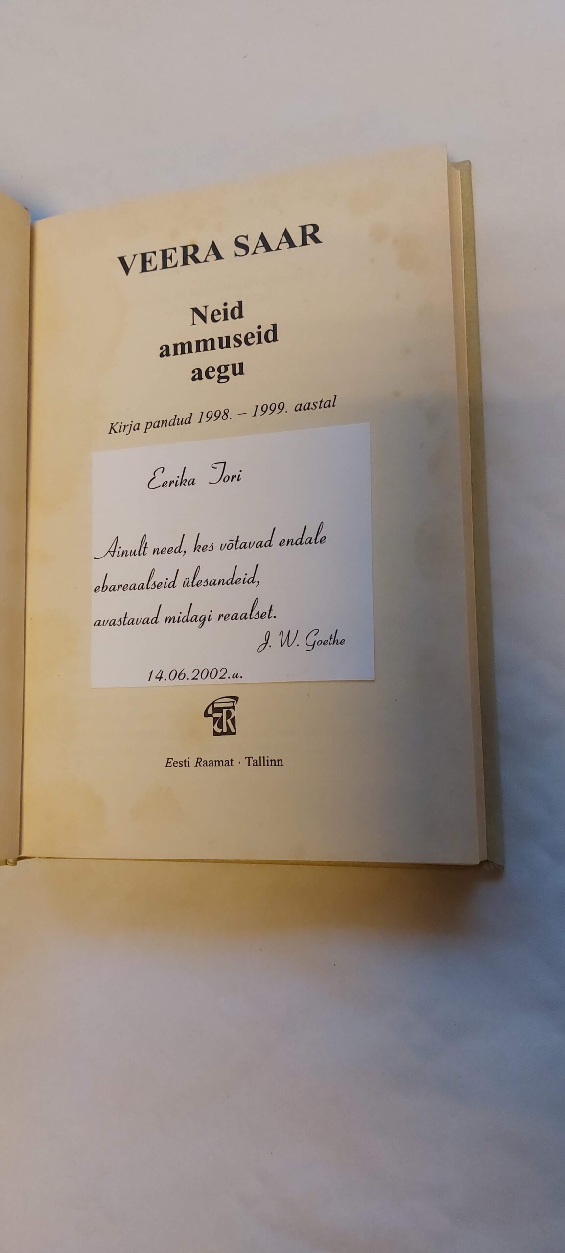 Neid ammuseid aegu. Veera Saar. 2000