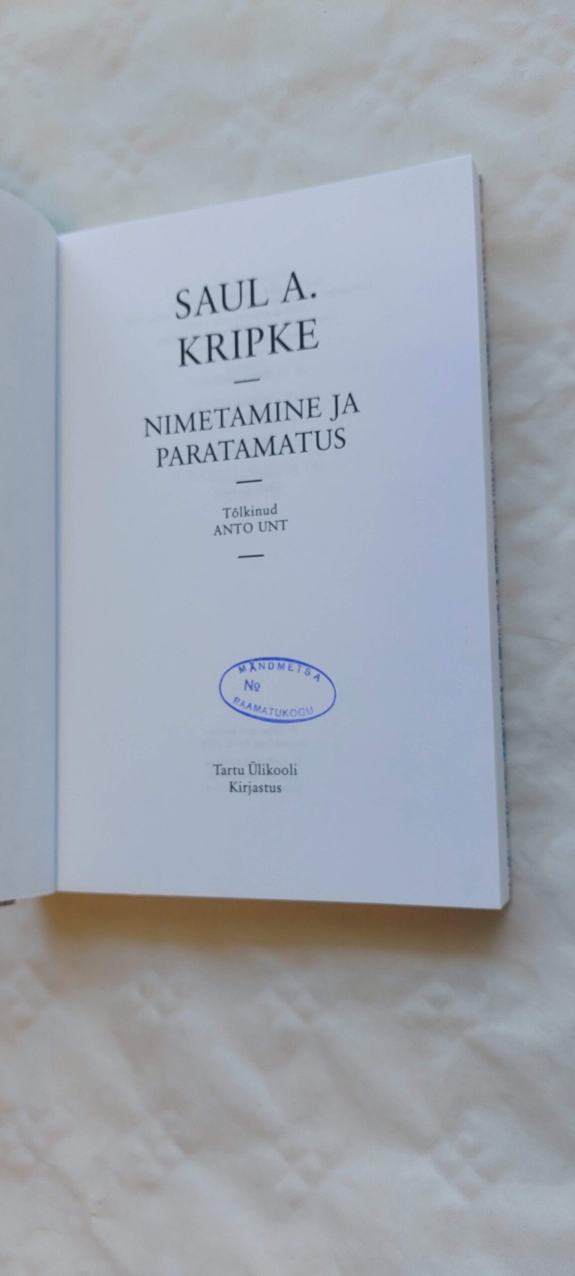 Nimetamine ja paratamatus. Saul A. Kripke. 2001