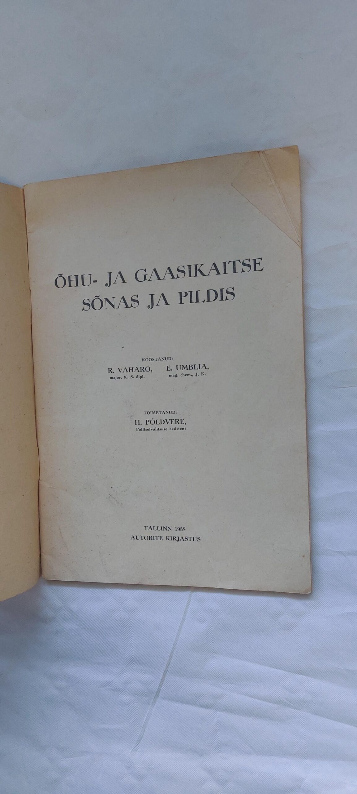 Õhu- ja gaasikaitse sõnas ja pildis. R. Vaho, E. Umblia. 193810.00 €Lisa soovikorviLisa soovikorvi -