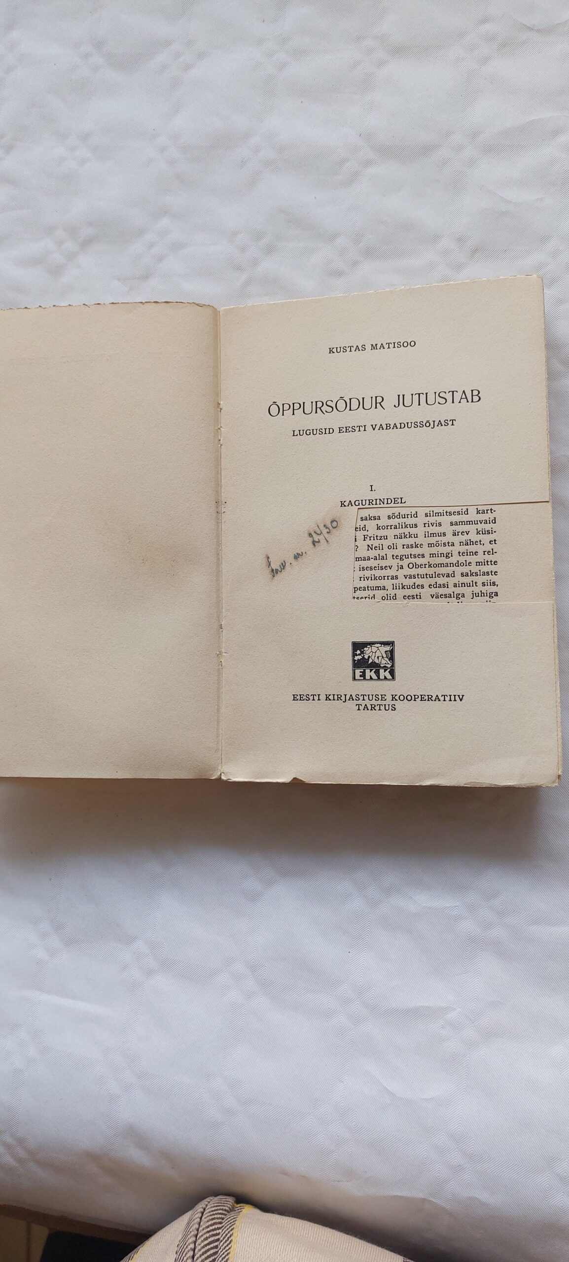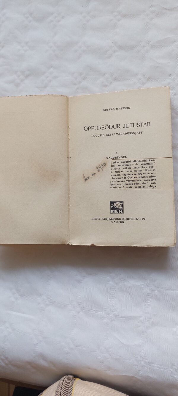 Õppursõdur jutustab. Lugusid Eesti Vabadussõjast. K. Matisoo. 1939