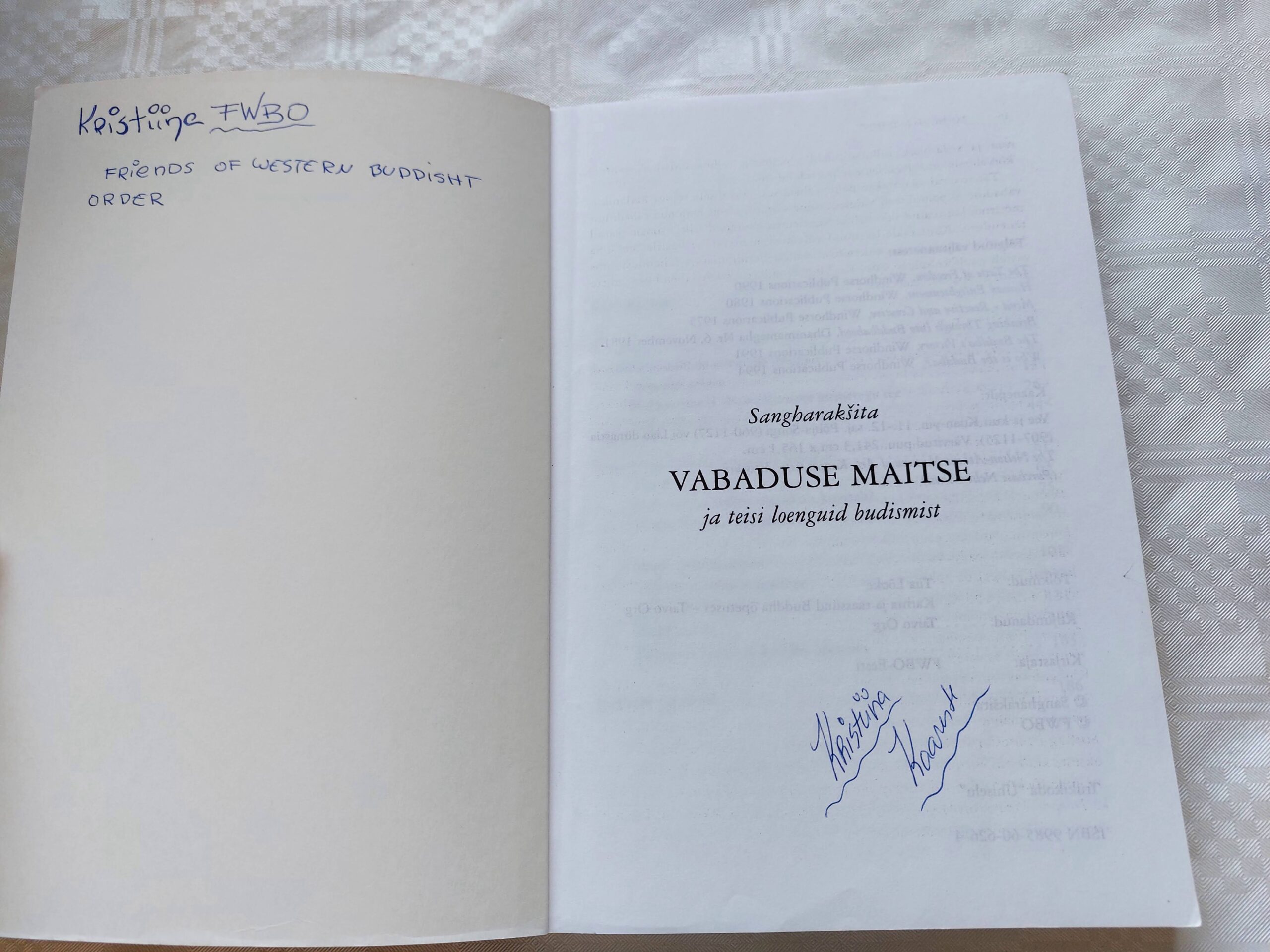 Vabaduse maitse ja teisi loenguid budismist. Sangharakšita. 2002