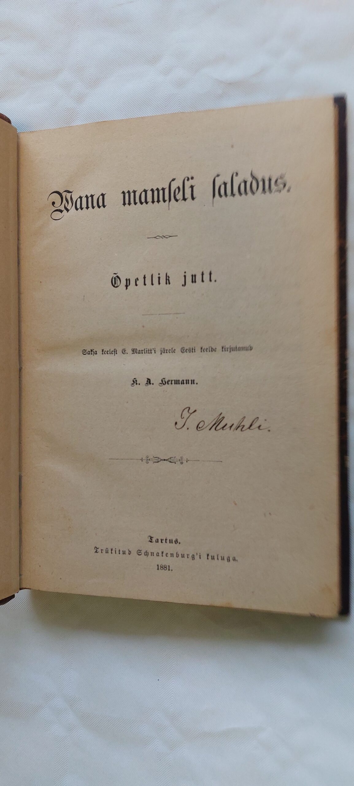 Vana manfeli saladus. Õpetlik jutt. F. A. Neumann. 1881